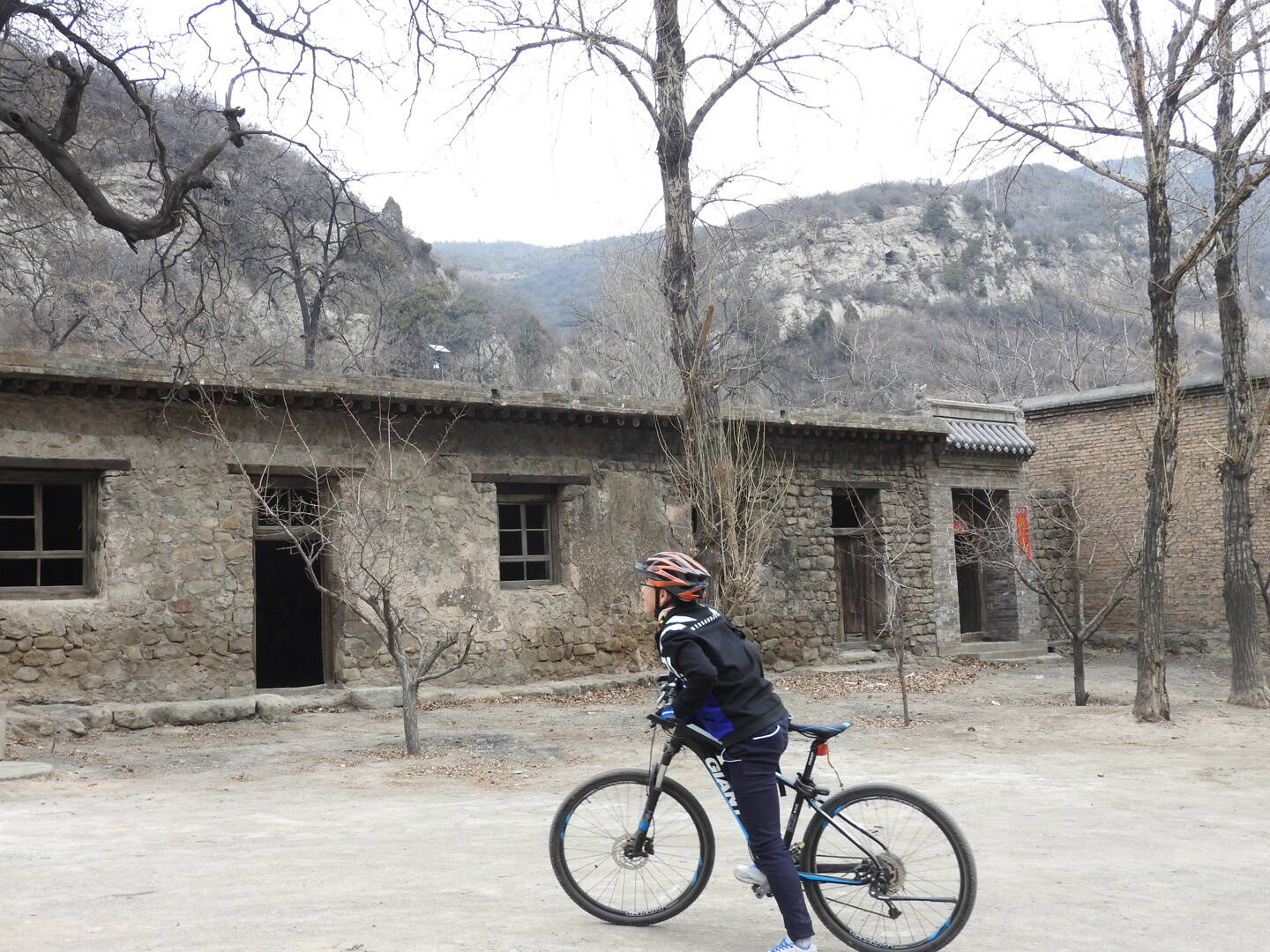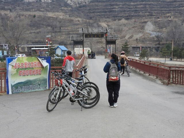 Велопарковка перед входом на территорию деревни-крепости. Вход внутрь стоит 10 юаней с человека. В вело-клубе для этого есть казначей и общественные деньги. Заплатить за себя мне не позволили.