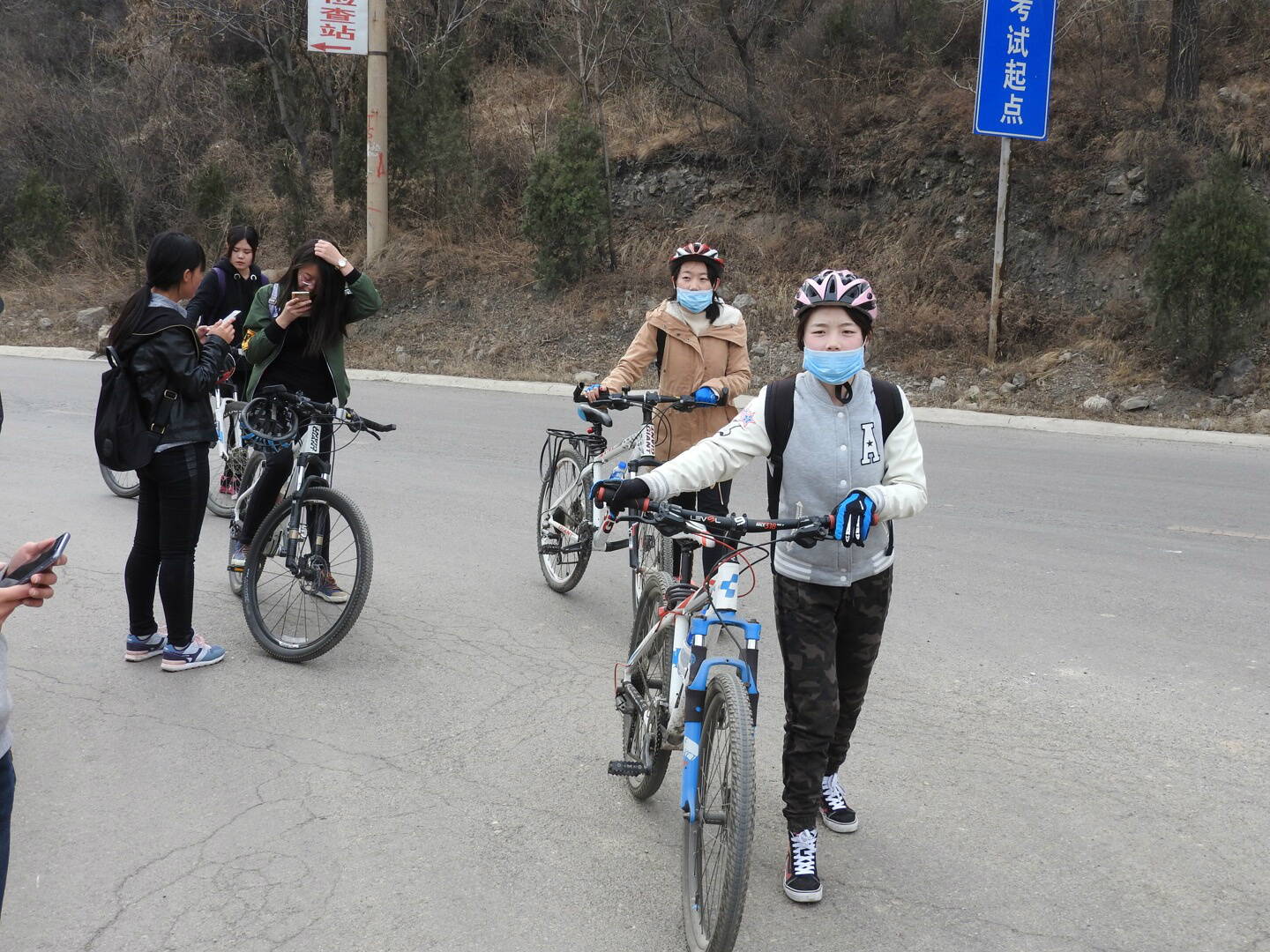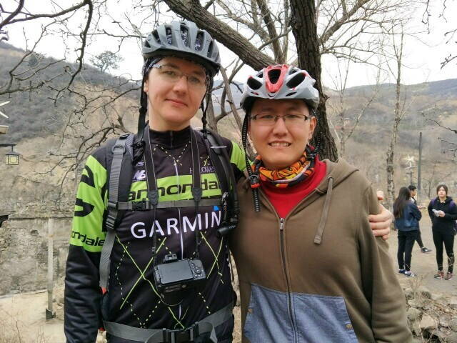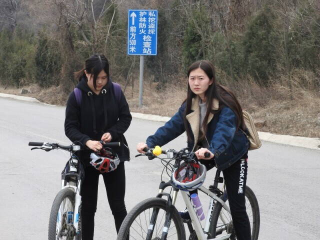 Китайские барышни на велосипедах. Ехали вполне бодро, в отличие от многих парней, кто с трудом влез на затяжной пологий подъем.