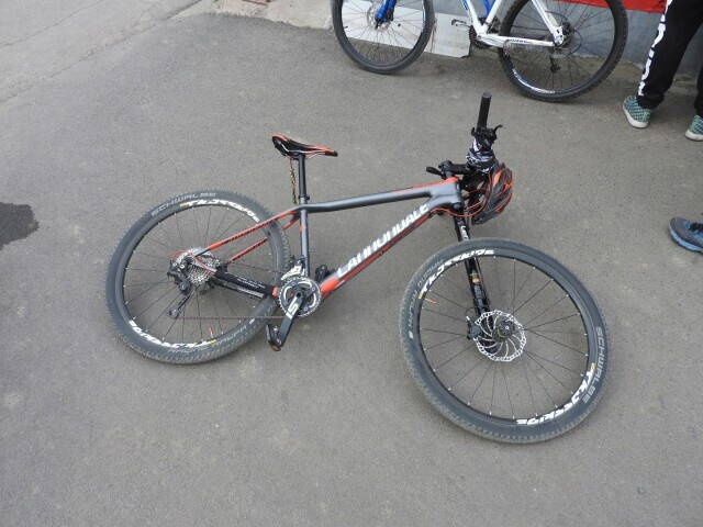 Один из организаторов ехал на не дешевом велосипеде Cannondale c вилкой Lefty, XTR трансмиссией и сингл системой FSI.