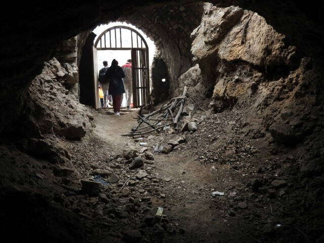 Склоны вокруг изрыты зияющими входами в пещеры и тоннели.