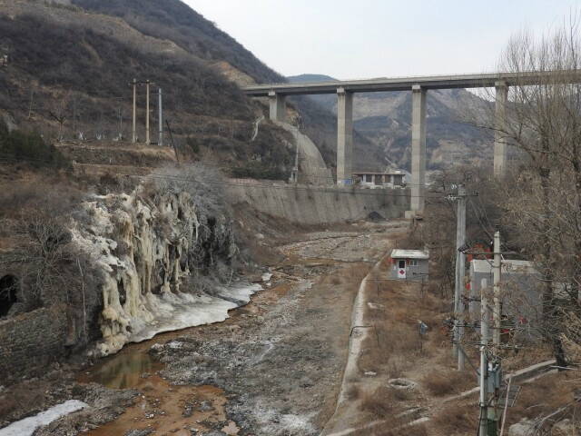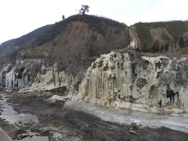 Напротив деревни на склонах полно не растаявших ледников. Пока солнце высоко - лед тает, как только сядет - схватывается мороз. Отсюда и странные наплывы.