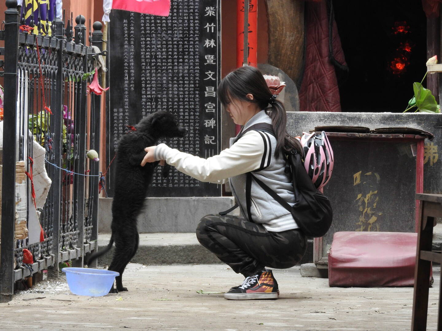 Внутри на веревочке сидел черный щенок. Одна из китаянок, забыв напрочь обо всем, побежала с ним обниматься. Я не стал идти внутрь с камерой, так как часовня не заброшена. Не люблю быть назойливым туристом.
