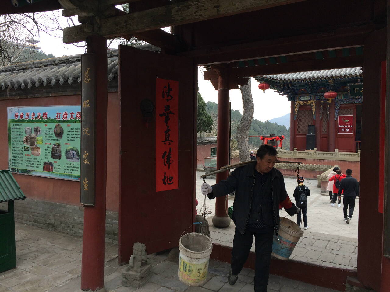 В небольшом домике со сквозным проходом по мостику, справа и слева в нишах стоят на страже статуи небесных воителей. Тут я единственный раз получил выговор за съемку со вспышкой.